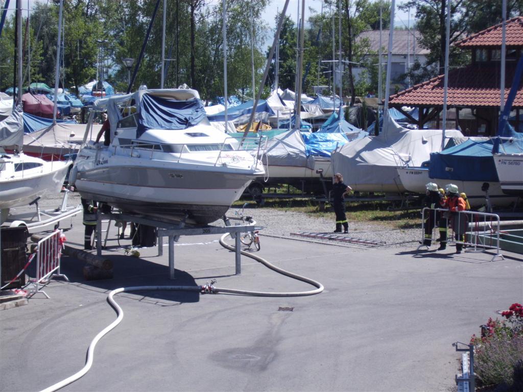 Deprecated: Function utf8_encode() is deprecated in /homepages/45/d16775473/htdocs/feuerwehr/html/einsaetze_show.html on line 146 Aus vorhergegangenem Einsatz (Montag) ergab sich ein weiterer Einsatz. Da nun ein Sachverständiger das Motorboot untersucht hatte stellte sich heraus das noch ausgelaufenes Benzin im Boot vorhanden war. Dieses wurde mit Unterstützung der Häfler Kameraden und dem RW 2 in bereitgestellte Fässer abgepumpt. Weitere Kräfte vor Ort: RW 2 Feuerwehr Friedrichshafen Radlader Bauhof Langenargen |