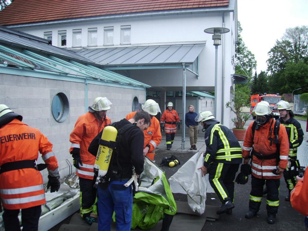 Deprecated: Function utf8_encode() is deprecated in /homepages/45/d16775473/htdocs/feuerwehr/html/einsaetze_show.html on line 146 Im Strandbad Langenargen trat durch einen defekten Dosierer Chlorgas aus. Das Gebäude in dem sich die Chlorgasanlage befand, wurde von der Feuerwehr Langenargen abgeschirmt. Nach Eintreffen der Feuerwehr Friedrichshafen begann man unter Vollschutz das defekte Dosiergerät abzudichten. Zur Unterstützung waren die Feuerwehr Friedrichshafen, Rettungsdienst, Polizei die groÃräumig absperrte und der stellv. KBM vor Ort. |