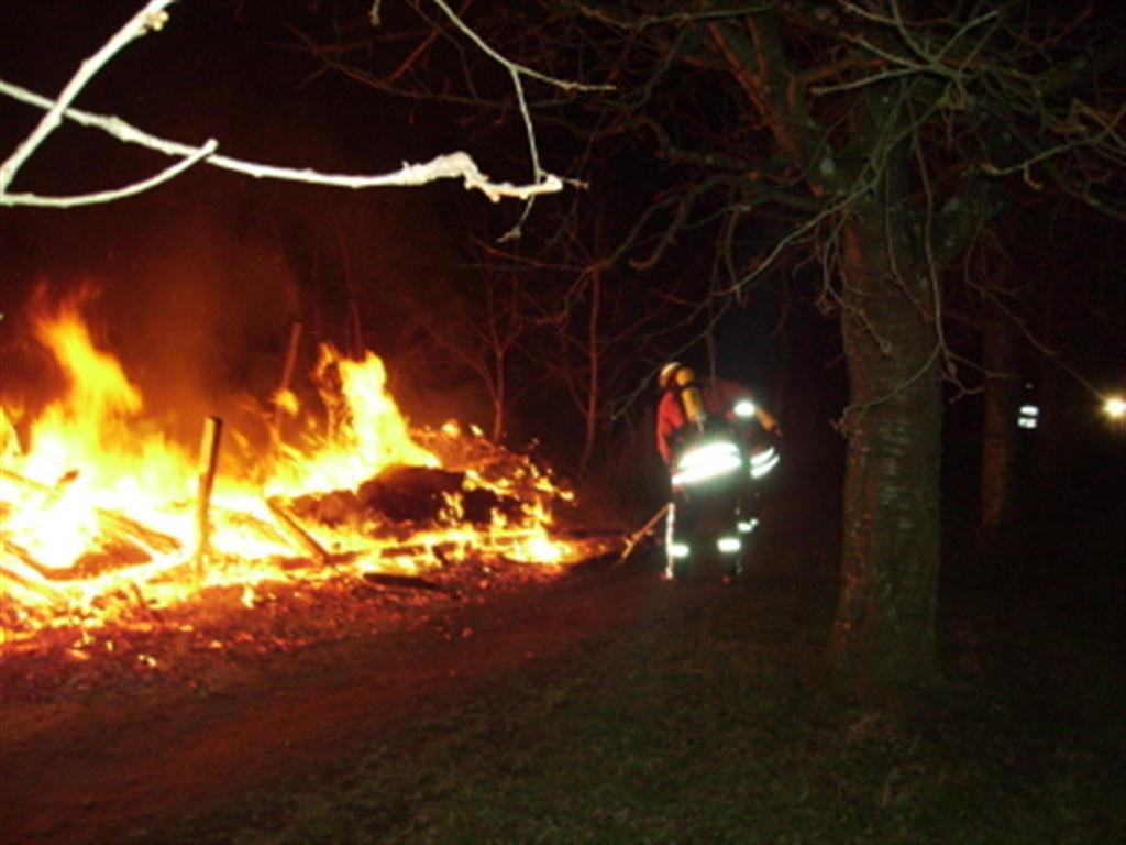Deprecated: Function utf8_encode() is deprecated in /homepages/45/d16775473/htdocs/feuerwehr/html/einsaetze_show.html on line 146 Nach dem Eintreffen der Feuerwehr stand eine Feldhütte bereits im Vollbrand, diese war teilweise eingestürzt. Es wurde beschlossen die Feldhütte kontrolliert abbrennen zu lassen. Nach dem Abbrand der Holzkonstruktion wurden Glutnester mit einem C-Rohr abgelöscht. |