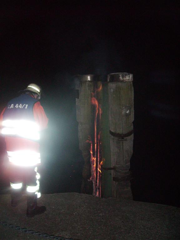 Deprecated: Function utf8_encode() is deprecated in /homepages/45/d16775473/htdocs/feuerwehr/html/einsaetze_show.html on line 146 Kurz nach Mitternacht wurde die Feuerwehr zu einem brennenden Dalben an der Schiffsanlegestelle alarmiert. An der Einsatzstelle eingetroffen, wurde ein in Brand gesetzter Dalben vorgefunden. Dieser wurde mit einem C- Rohr abgelöscht. |