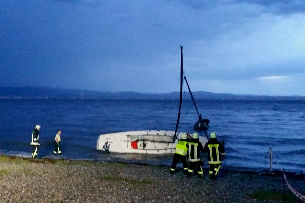 Deprecated: Function utf8_encode() is deprecated in /homepages/45/d16775473/htdocs/feuerwehr/html/einsaetze_show.html on line 146 Durch ein aufziehendes Gewitter wurden drei vor Langenargen vor Anker liegende Segelboote losgerissen und strandeten im Bereich der Uferpromenade. Die alarmierte Feuerwehr Langenargen sperrte den Bereich vor zahlreichen Schaulustigen ab und sicherte die Kraftstofftanks um eine Umweltgefährdung auszuschließen. Im weiteren Verlauf wurde die Einsatzstelle ausgeleuchtet und der Besitzer der Boote bei der Bergung unterstützt. weitere Kräfte Polizei |