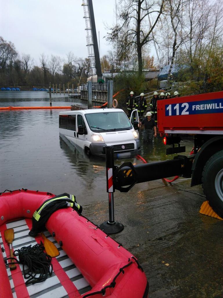 Deprecated: Function utf8_encode() is deprecated in /homepages/45/d16775473/htdocs/feuerwehr/html/einsaetze_show.html on line 146 Beim Versuch ein Boot im Yachthafen aus dem Wasser zu slippen, rollte ein Fahrzeug in das Hafenbecken und versank dort vollständig. Da sich der Fahrer selbst und unverletzt an Land retten konnte, wurde dieser mit Decken versorgt und die Feuerwehr konzentrierte sich auf die Sicherung des Fahrzeugs. Um eine Umweltgefährdung durch eventuell auslaufende Betriebsstoffe zu verhindern, wurden Ölsperren ausgebracht. Anschließend gelang es das Fahrzeug mit Hilfe des nachalarmierten GW Kran der Feuerwehr Friedrichshafen anzuschlagen, und langsam aus dem Wasser zu ziehen. Ein Eingreifen der ebenfalls nachalarmierten Taucher des DLRG war nicht mehr erforderlich. Weitere Kräfte Feuerwehr Kressbronn DLK Feuerwehr Friedrichshafen GW Kran Kreisbrandmeister Wasserschutzpolizei DLRG |