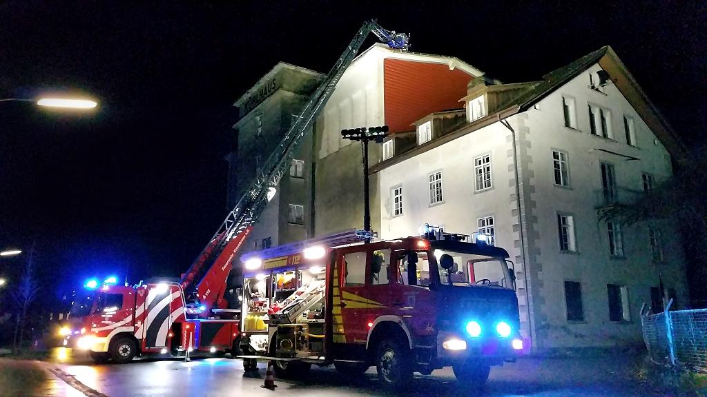 Deprecated: Function utf8_encode() is deprecated in /homepages/45/d16775473/htdocs/feuerwehr/html/einsaetze_show.html on line 146 Ein weiterer Sturmschaden rief die Einsatzkräfte der Feuerwehr Langenargen am Abend auf den Plan. Blechteile eines Daches hatten sich durch die Sturmböen gelöst und drohten auf die angrenzende Straße zu stürzen. Mit Hilfe der hinzugezogenen Drehleiter aus Kressbronn konnten die Dachteile entfernt werden. Weitere Kräfte Drehleiter Kressbronn Polizei |