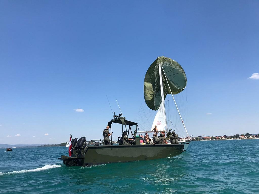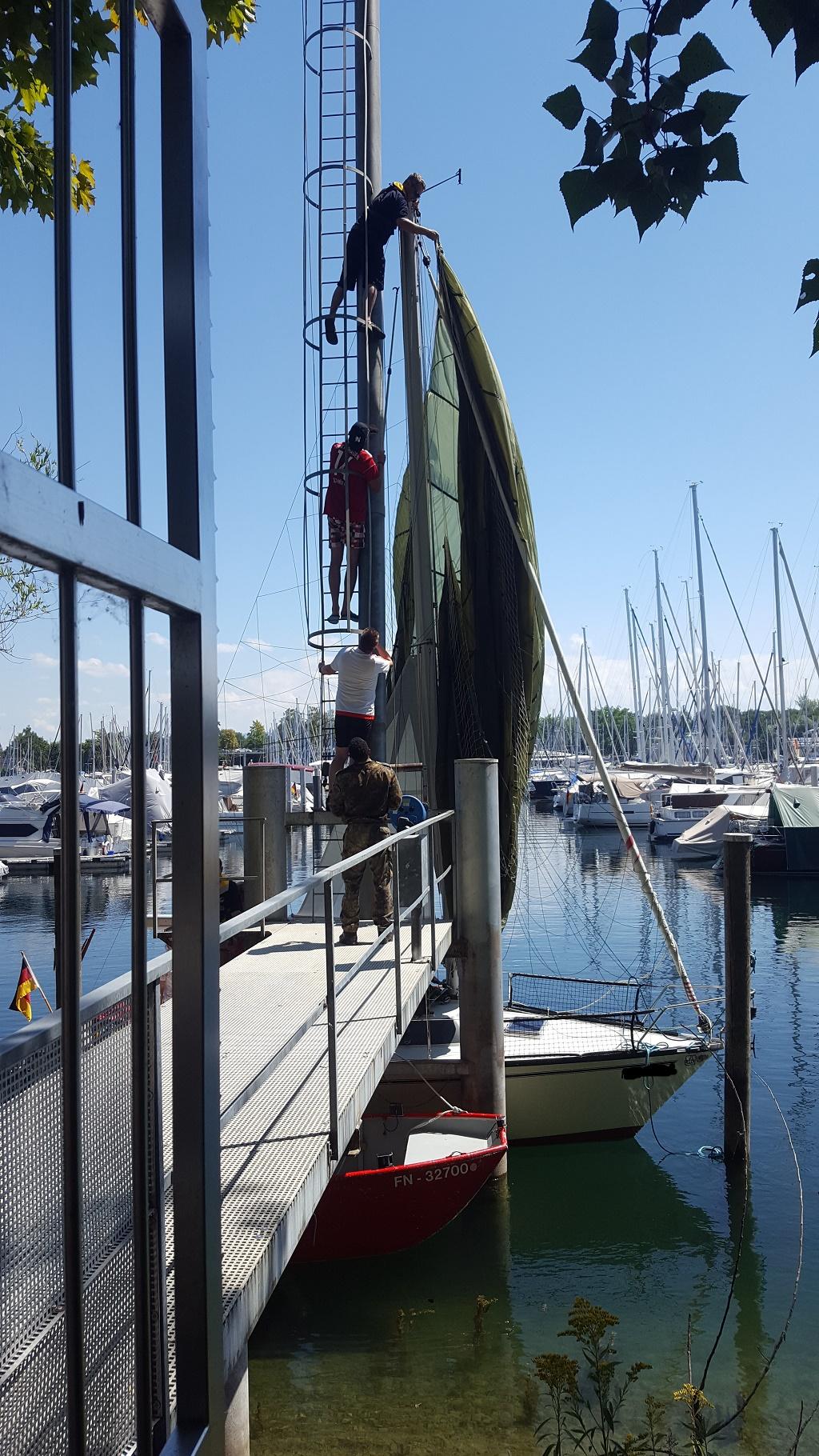 Deprecated: Function utf8_encode() is deprecated in /homepages/45/d16775473/htdocs/feuerwehr/html/einsaetze_show.html on line 146 Während der Übung zum Notwasserungsverfahren der Bundeswehr-Fallschirmspringer vor Langenargen kam es zur Kollision zwischen einem Fallschirmspringer und einem Segelboot. Alle Beteiligten blieben glücklicherweise unverletzt. Das durch den Fallschirm stark manövrier-behinderte Segelboot wurde durch ein Mehrzweckboot der Feuerwehr Langenargen in Gohrener Hafen begleitet. Dort konnte am Mastturm der Fallschirm aus dem Segelmast gelöst werden und der Fallschirmspringer zurück an Langenargen gebracht werden. |