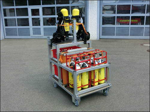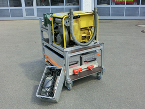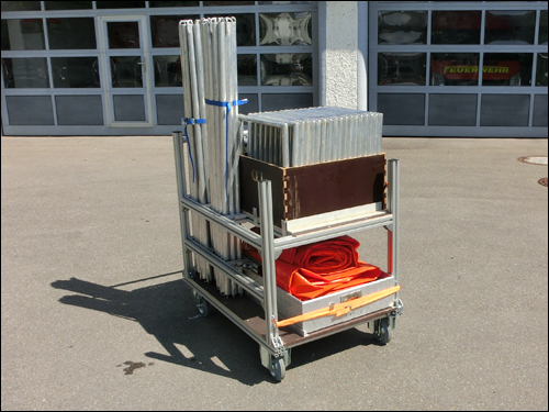 Im Einsatzfall stehen im Feuerwehrhaus sechs verschiedene Rollwagen für den Transport im GWT bereit. Auf die Rollwagen wurde Einsatzmaterial fest verlastet, dieses ist ebenfalls am Einsatzort durch die Rollwagen mobil einsetzbar.Tauchpumpen