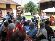 Einheimische und Urlaubsgäste treffen sich, um bei Unterhaltungsmusik